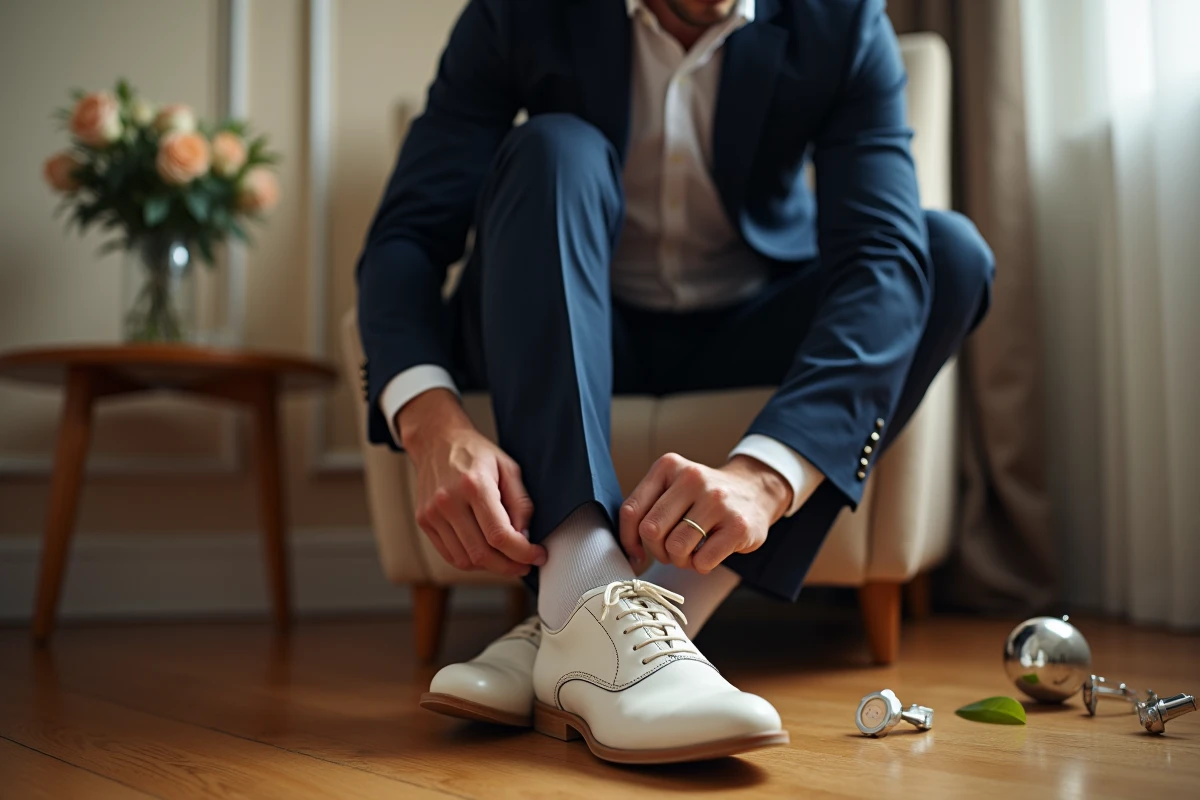 Le choix de la matière change radicalement la donne. Un cuir pleine fleur garantit éclat et tenue, là où un nubuck ou un veau velours se montre plus capricieux face aux tâches. La nuance aussi mérite réflexion : blanc optique pour affirmer la rupture, ivoire ou blanc cassé pour plus de douceur. Accordez la teinte au costume, à la chemise, et même à la thématique de la journée. Les créateurs français rivalisent d’idées pour proposer des chaussures à la fois robustes, raffinées et capables de tenir la distance. L’essentiel ? Que la paire choisie serve l’harmonie de l’ensemble plutôt que de l’éclipser.